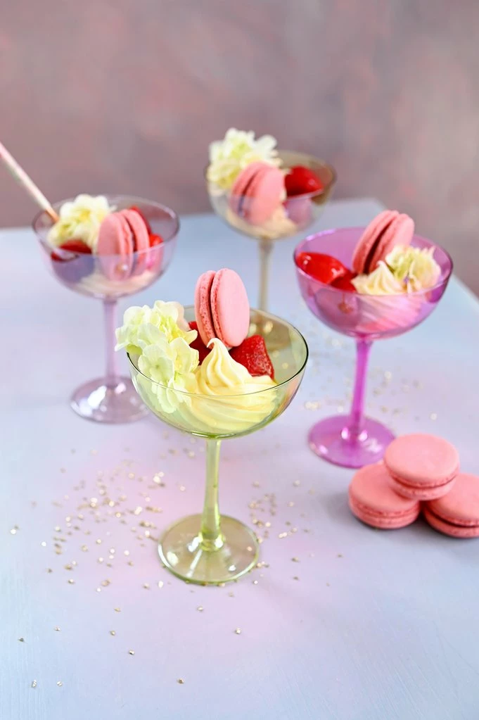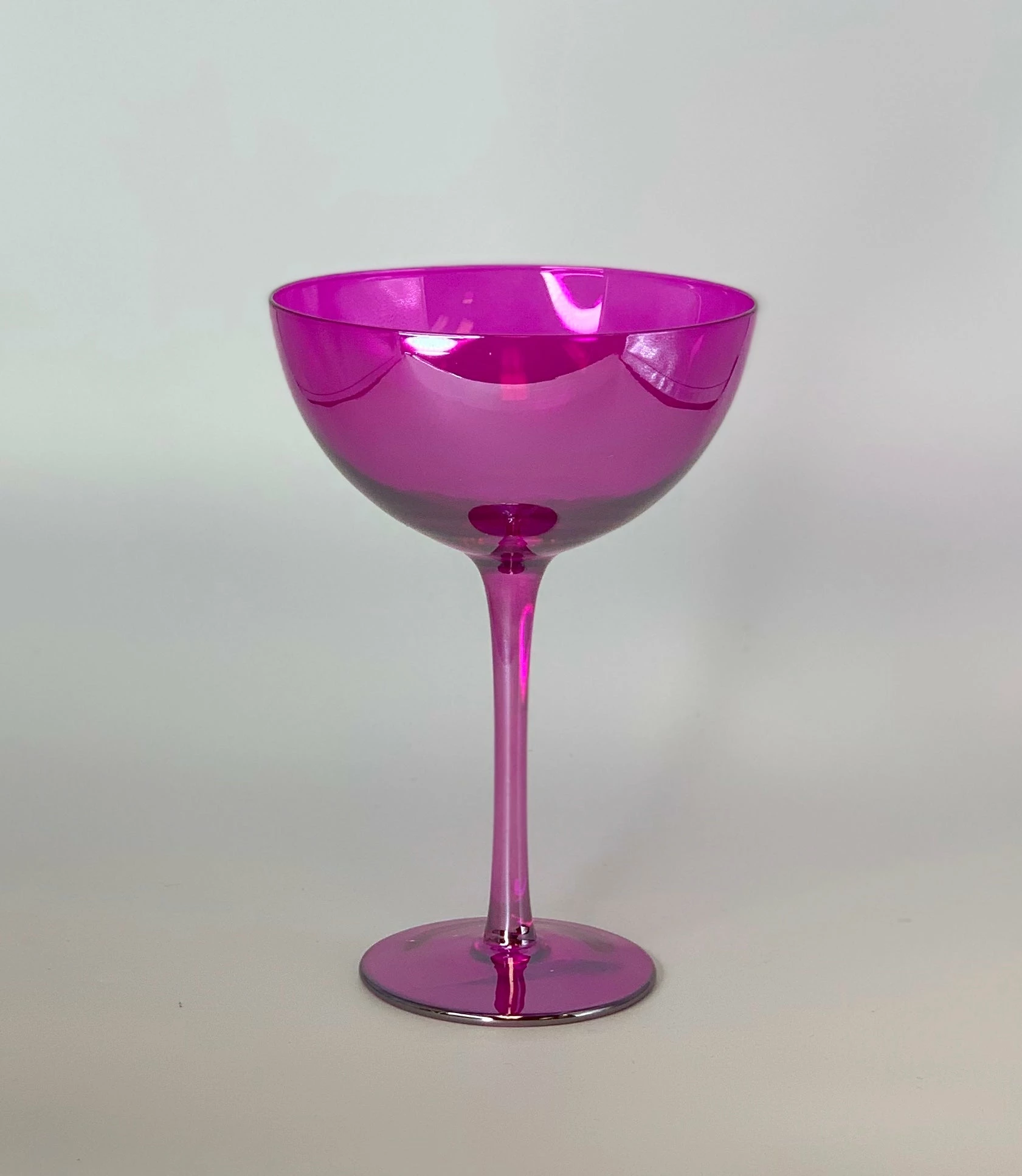 These colorful candy coupes are perfect for sipping your favorite cocktail or holding sweet sorbets and desserts! Glimmering glass is coated in shades of purple, pink, green and gold, then covered in an irresistible iridescent finish that will make all of your sweets and sips sparkle and shine.