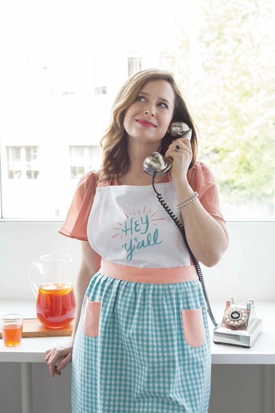 There’s no shortage of southern charm here, y’all. This sweet and sassy classic apron brings a farmhouse feel to the figure. A defined waist with pleats adds dainty charm, while recipe cards can be tucked away in two front pockets.