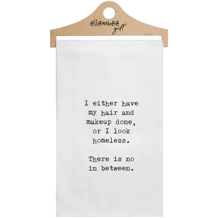 Our new white towels are printed by hand (by our all female team!) in Michigan from 100% super soft bleached cotton. they measure approximately 26″ x 27″ when opened up, and can be thrown in the washer and dryer. They’re printed with an eco-friendly, water-based ink, that’s good for the environment and soft to the touch! Each of our white towels are smoother than our textured natural towels, have a twill tape loop on the back, and come on a heavy-duty cardboard hanger. They make a great hostess gift with a bottle of wine, or a fun stocking stuffer or white elephant gift too.