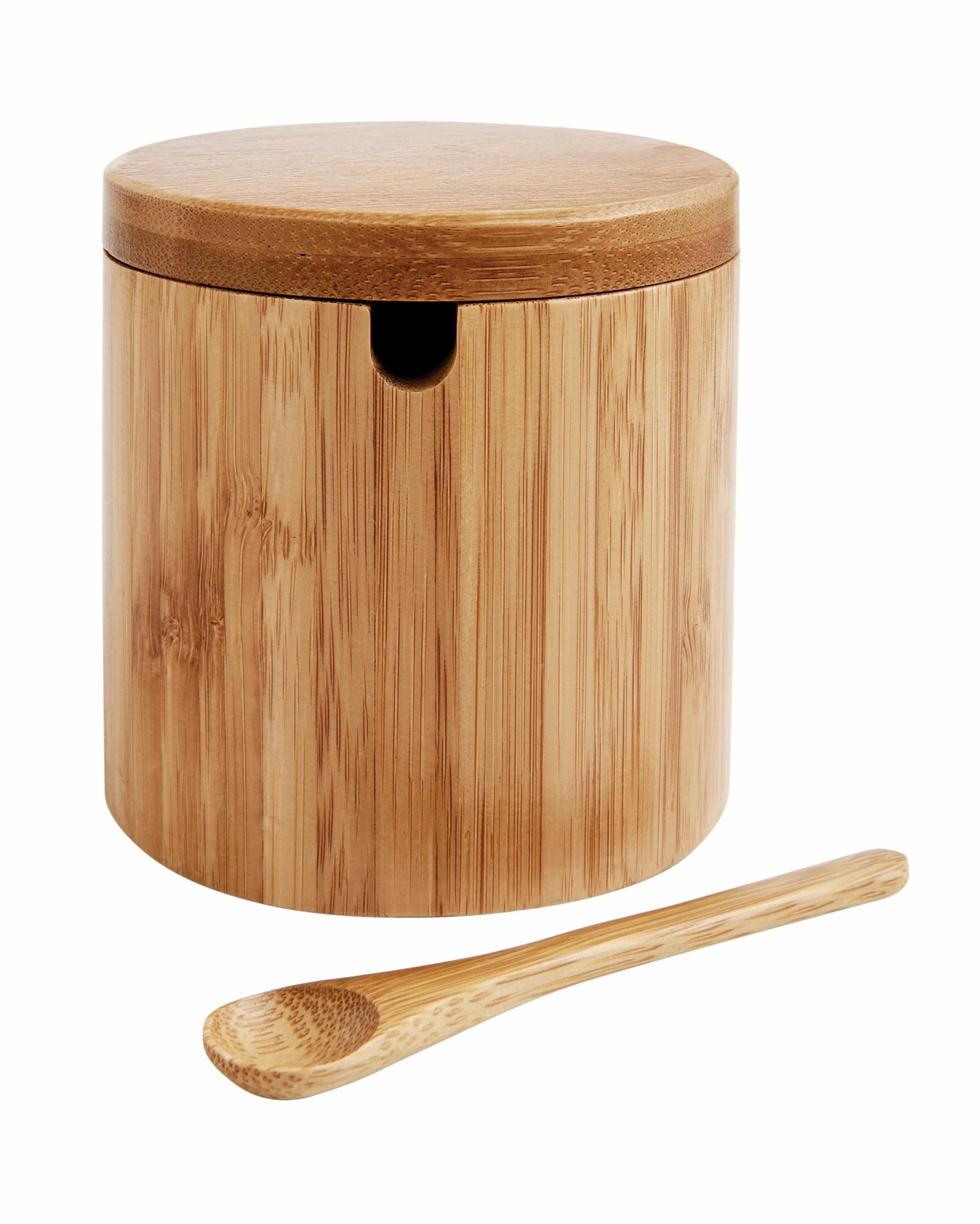- Helen’s Asian Kitchen Bamboo Salt Box with Lid and Spoon stores all types of cooking salts conveniently within reach and portions it out as needed