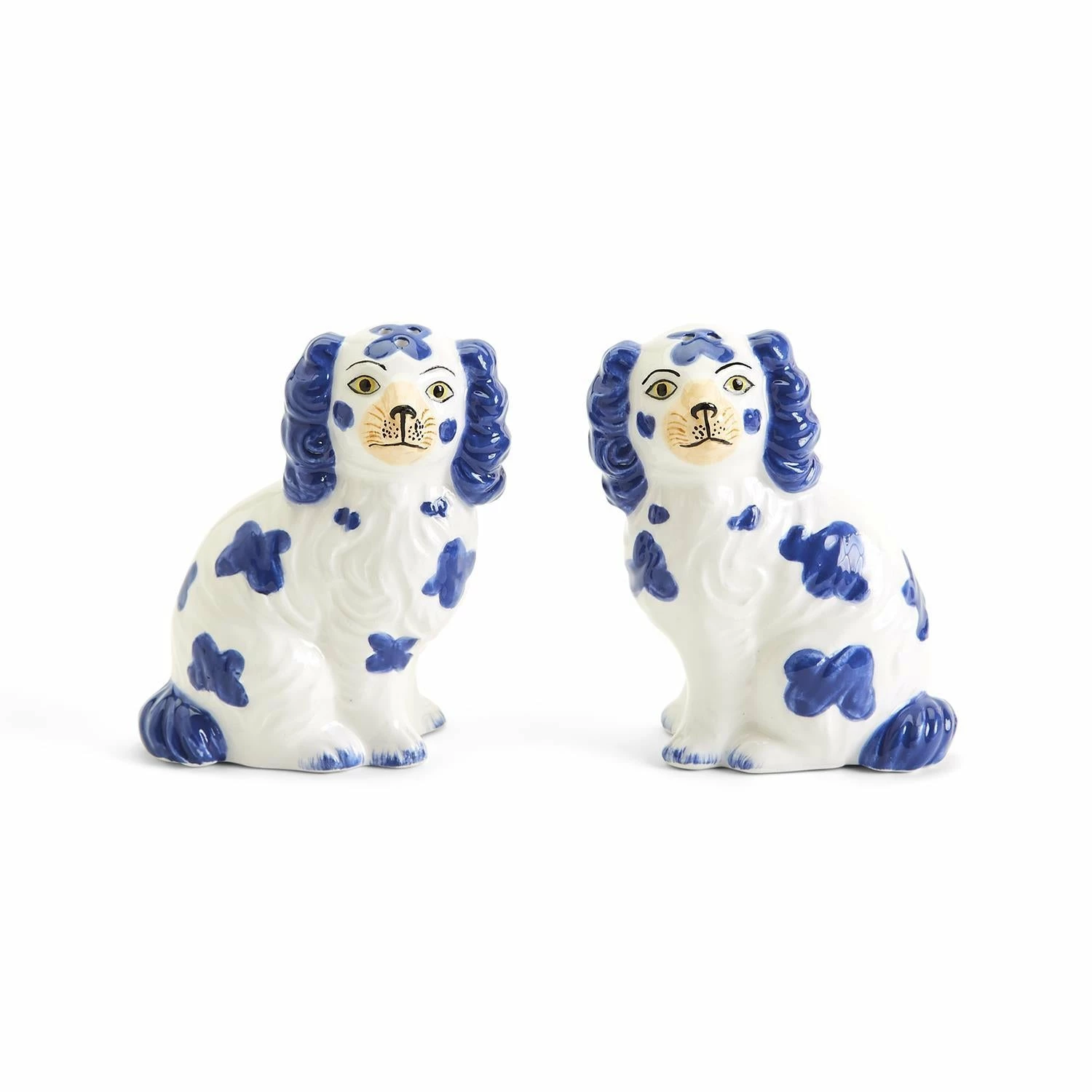 These Staffordshire dog salt and pepper shakers will stand guard in your home as a decoration or on your table. Hand painted ceramic with a high glaze finish.