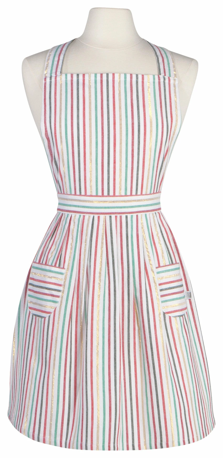 A classic silhouette brings a farmhouse feel to the figure. A defined waist with pleats adds dainty charm, while recipe cards can be tucked away in two front pocket. This festive apron is just asking to be sprinkled in flour.
