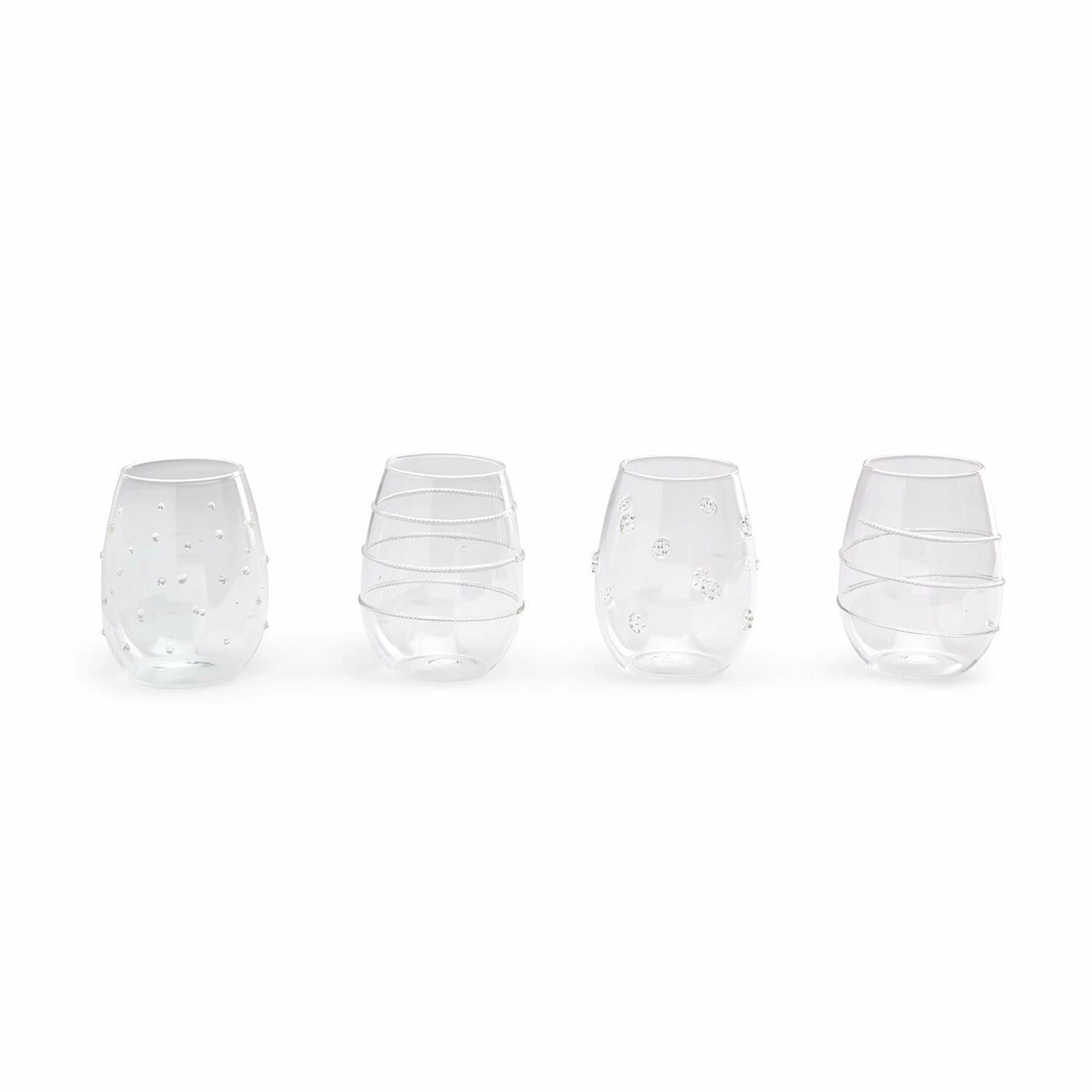 Celebrate in style! These hand blown stemless wine glasses will add something special to your celebratory cheers! Detailed with geometric and fun patterns these are a must have.