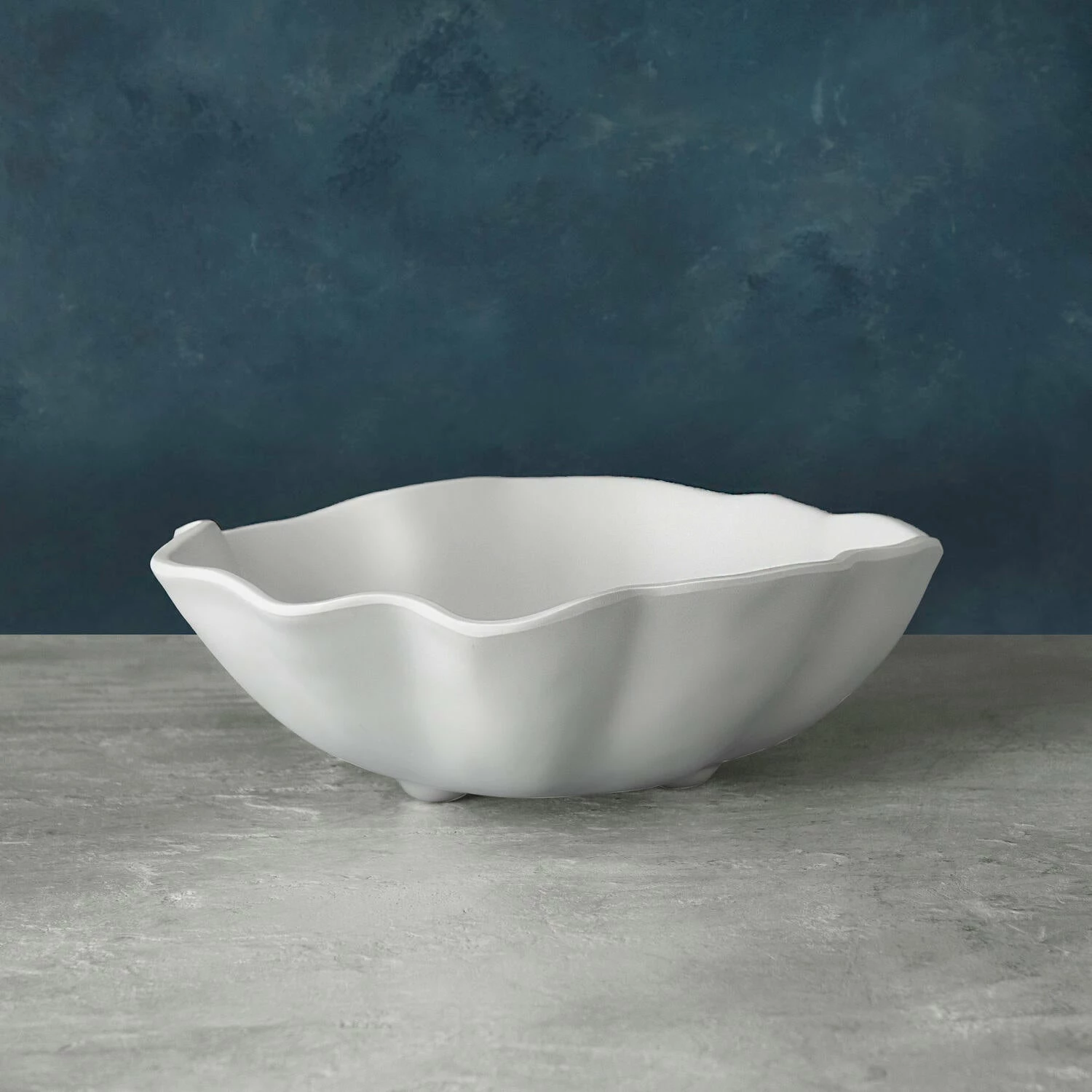 Artistry, innovation and practicality blend seamlessly in this exquisite Beatriz Ball melamine design. The medium white bowl, presented in a sensuous matte finish, is a handsome multi-purpose piece enlivened by an undulating surface. Great for salads or fruit! Beatriz Ball is reinventing melamine … again! The fabulously functional 6-piece VIDA Nube (Spanish for “cloud,” and pronounced, “noo-beh”) Collection features sculptural works of art rendered in a luscious satin finish. The Nube collection of luxury melamine includes three bowls, an ice bucket, salad servers, and a chip and dip that are as practical as they are beautiful. Made of luxury melamine for everyday enjoyment, this piece is ideally suited for indoor and outdoor entertainment. Dishwasher safe (top rack), heavy-weight, break resistant and durable, food safe, BPA and PABA free.